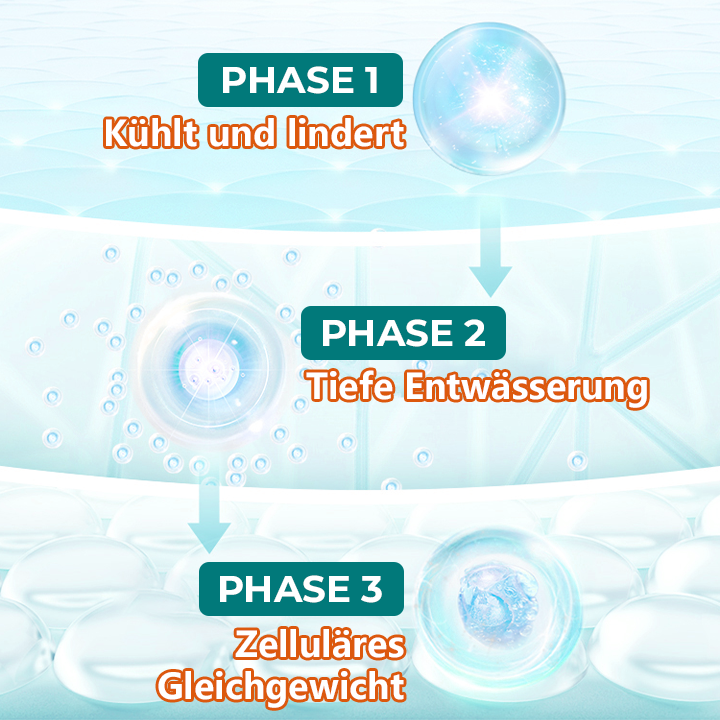 Timilk® wirkt durch ein dreiphasiges System, das Sofortkühlung, aktive Entwässerung und langfristige Zellbalance kombiniert.